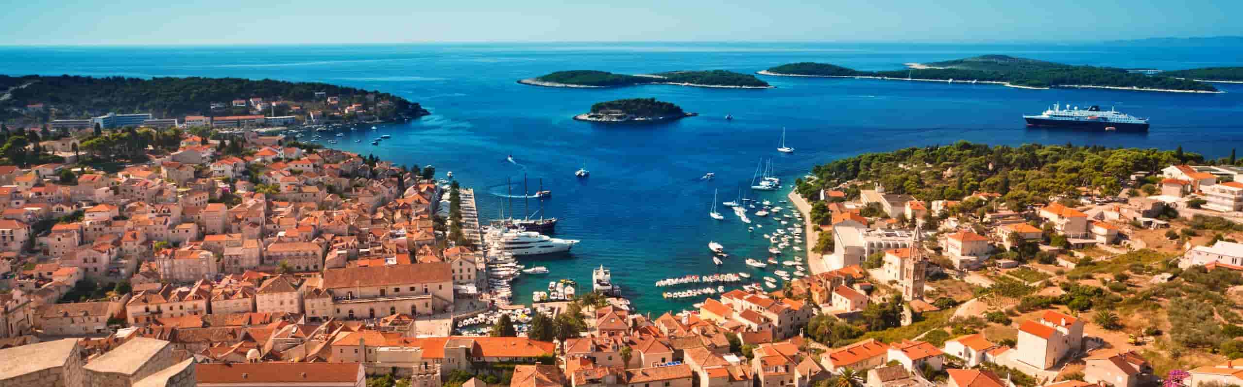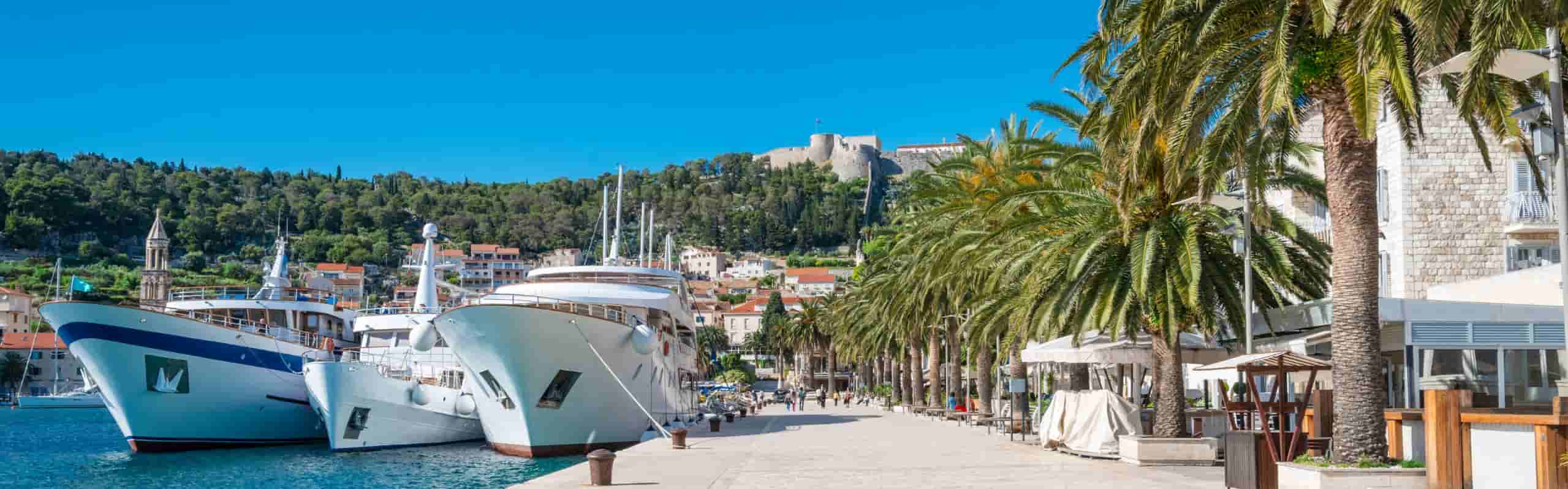 フヴァル島へはスプリットを拠点に双胴船(カタマラン)やフェリーを利用します。アドリア海の景色を眺めながらの旅をお楽しみください。