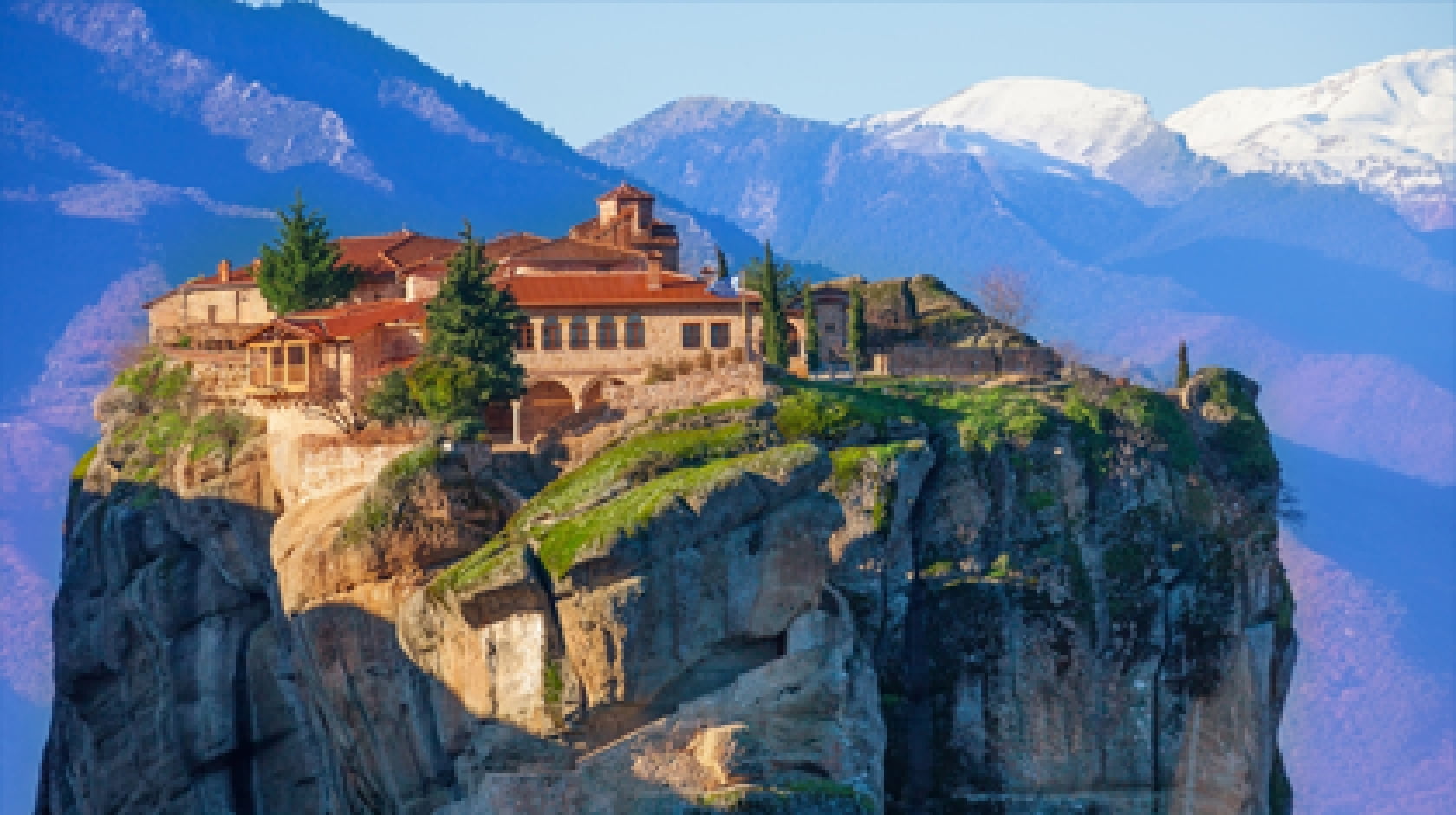 ギリシャ山間のローカルな雰囲気を残す「カランバカ」を基点とし、天空の修道院とも称される「メテオラ」へ。険しい奇岩の風景、穏やかで荘厳な修道院、眼下に迫る美しい景観…。コントラストが印象的な、絶景の旅行スポットです。