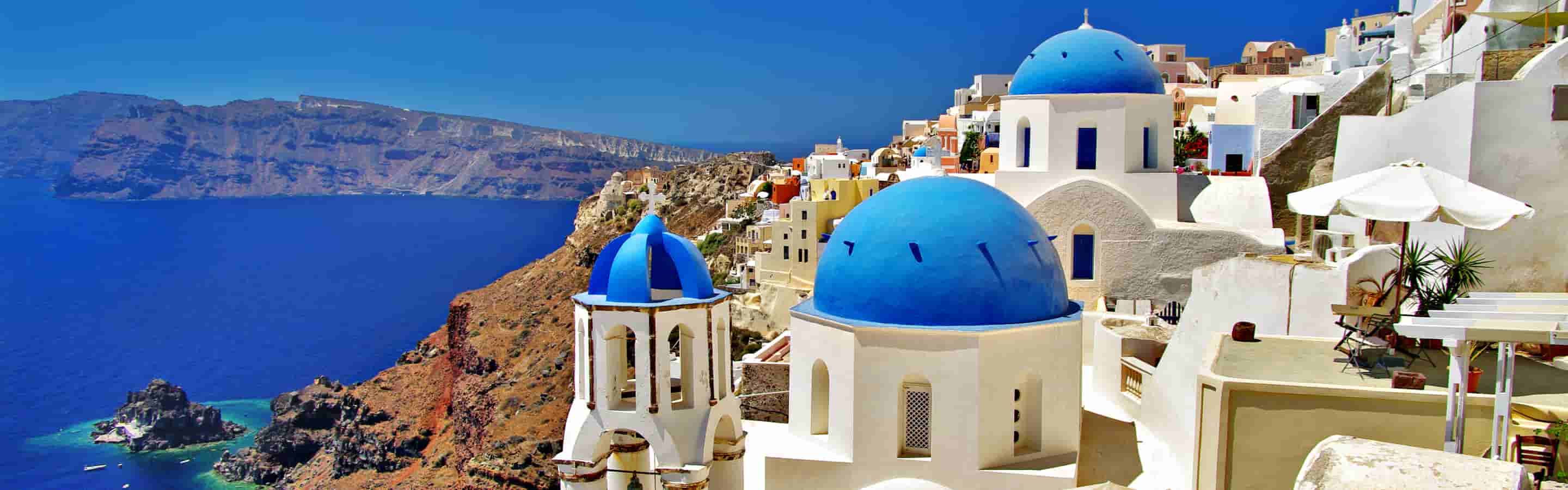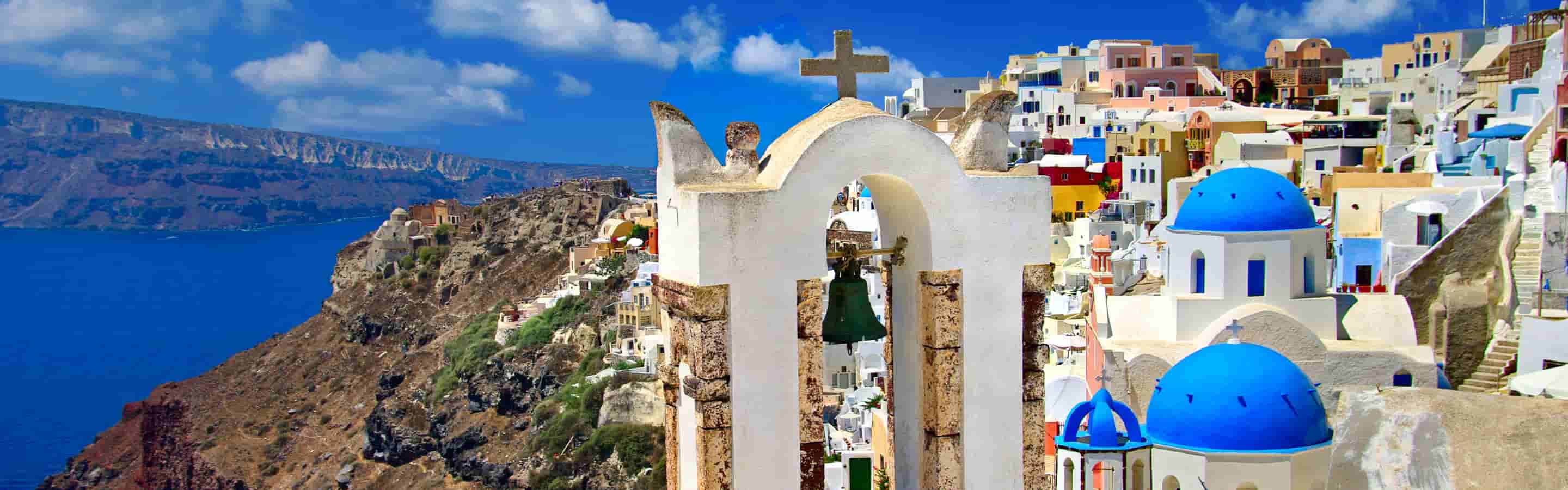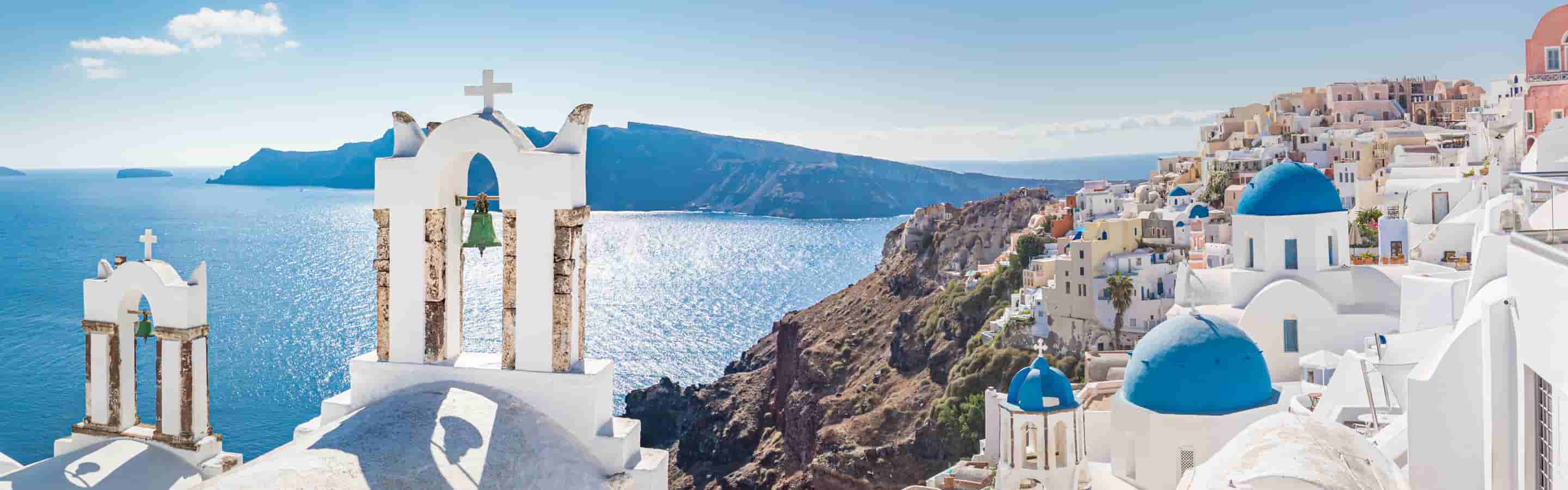 紺碧の海と真っ白な家並みギリシャならではのコントラスト。400以上もの教会と印象的な鐘。「世界でもっとも美しい」と称えられる夕日…。きらめくエーゲ海に浮かぶ「サントリーニ島」は、訪れた人の心に残る特別な旅行先のひとつです。