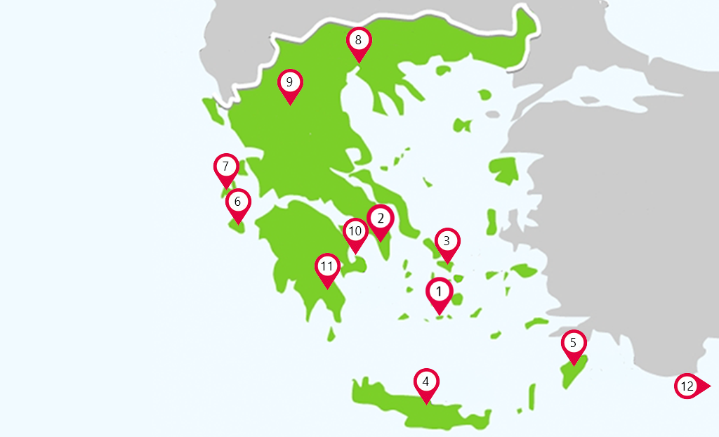 ヨーロッパの南東部に位置し、バルカン半島南部の本土と、国土の20%を占めるエーゲ海の島々から成り立っています。