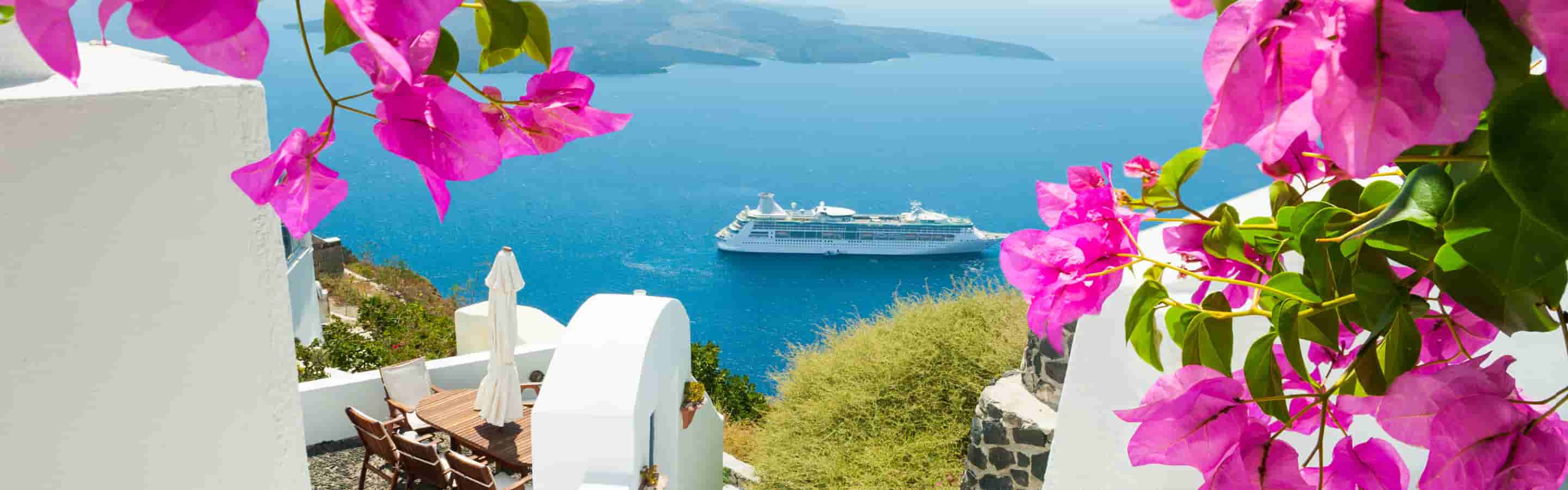 サントリーニ島~ミコノス島間はフェリー移動!美しいギリシャエーゲ海の船旅を満喫してください♪チケットはもちろん港~ホテル間はしっかり送迎付きで安心のご旅行を。